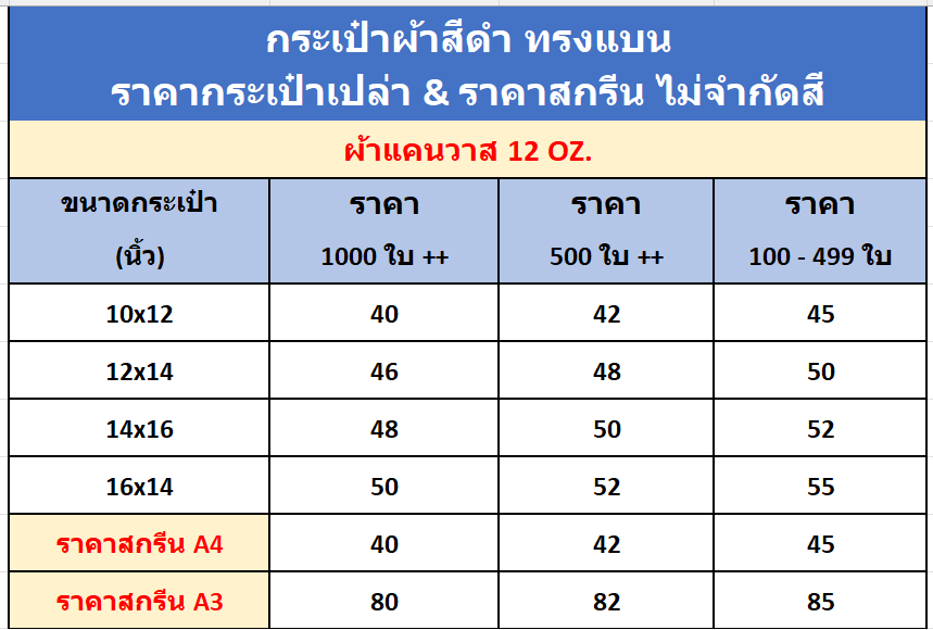 ผ้าแคนวาสมีความหนาให้เลือก เรียกหน่วยของความหนาเป็น ออนซ์