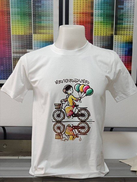เทคนิคการสกรีนเสื้อดิจิตอล โดยพิมพ์สีลงบนแผ่นฟิล์มที่เคลือบสารพิเศษ ผ่านการรีดร้อน ทำให้ลายสกรีนยึดติดบนเนื้อผ้า