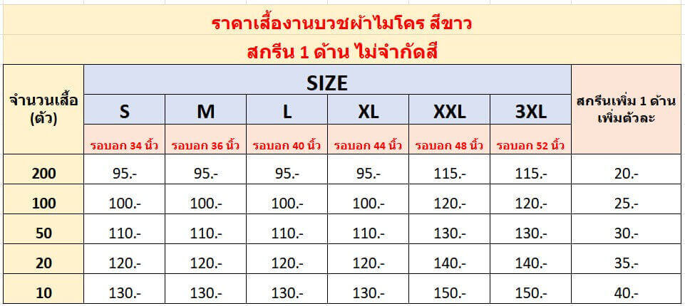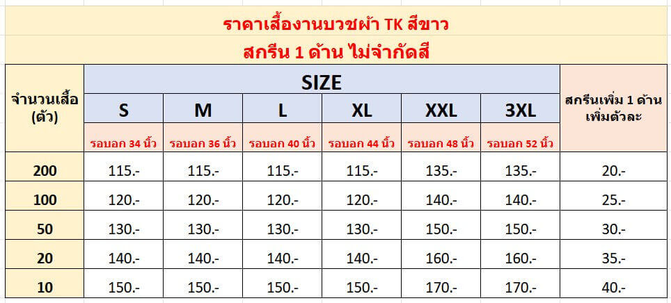ราคาเสื้องานบวช ผ้าTK