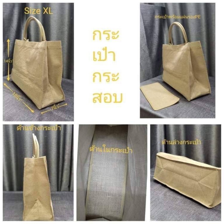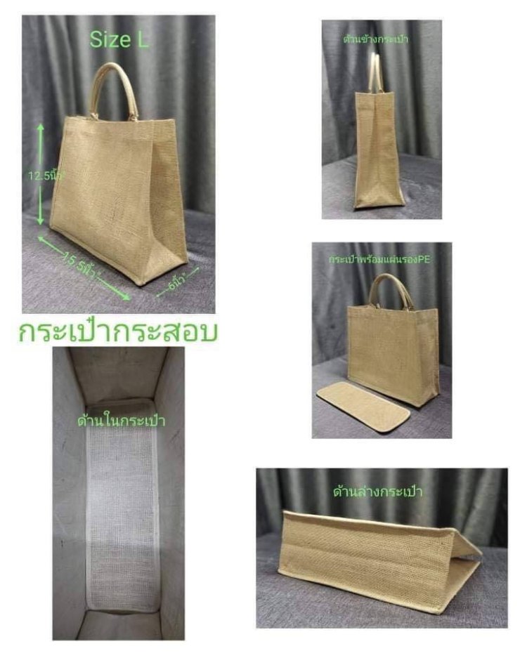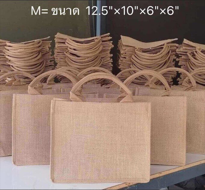 กระเป๋าผ้ากระสอบ เป็นผ้าทอจากเส้นใยธรรมชาติ มีความแข็งแรง ทนทาน และใช้งานได้ระยะยาว เป็นเส้นใยที่ย่อยสลายได้เอง เป็นมิตรต่อสิ่งแวดล้อม