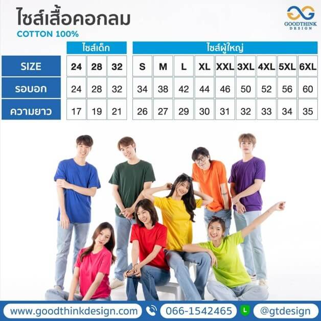 ทรงเสื้อ Unisex ใส่ได้ทั้งชายและหญิง มีทั้งไซส์เด็กและผู้ใหญ่